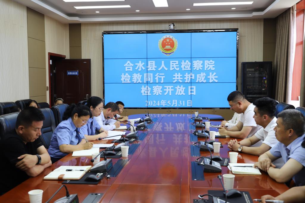 为深入学习贯彻习近平新时代中国特色社会主义思想,进一步做好未成年人保护工作,预防和减少未成年人犯罪,在“六一”国际儿童节来临之际,合水县人民检察院开展了主题为“检教同行,共护成长”检察开放日活动。县人大代表、政协委员、人民监督员、妇儿工委、县教育局、民政局、司法局、共青团、妇联、关工委及乐蟠小学教师、家长、学生代表等30余人受邀参加。